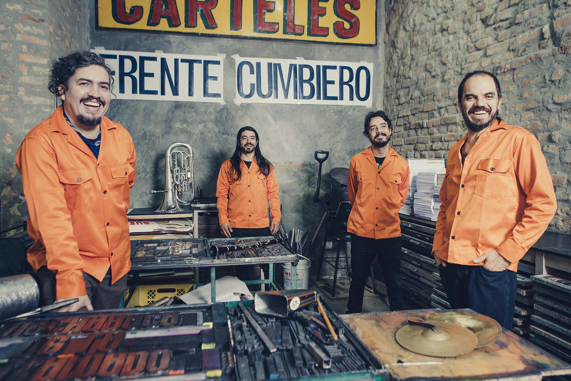Frente Cumbiero is widely recognized as one of the spearheads of the cumbia nueva (new cumbia) movement in Colombia, because of their fresh, contemporary and exciting take on cumbia. The quartet is headed by Colombian songwriter and producer Mario Galeano, who also is part of Ondatrópica and Los Pirañas. He draws his inspiration, ánd his samples that form the base of his contemporary tracks, from his large collection of cumbia records, mainly from the 60s and 70s.